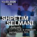 Start from: 05/03/2026 - 19:00End at: 07/03/2026 - 19:00Ekspozitë personale “Përmes Teje në Dritë” e Lidia ThimjosAktivitete të Përfunduara