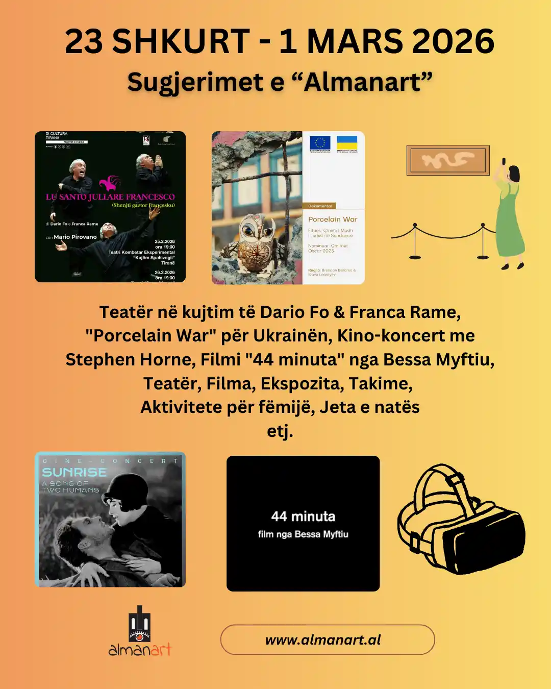 Teatër, Filma, Ekspozita, Takime, Aktivitete për fëmijë, Jeta e natës – Sugjerimet e “Almanart”