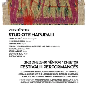 Jemi të lumtur të ndajmë me ju programin e nëntorit! Gjatë këtij muaji, Vila 31 do të hapë studiot dhe do të prezantojë punimet e artistëve të sesionit të tretë në rezidencë. Një festival performancash, netë filmi, koncerte janë po ashtu pjesë e programit publik të këtij muaji. Programi është falas dhe i hapur për […]