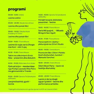 “Zgjuar, Qyteti që nuk fle, lexon” Maratona kushtuar librit ZGJUAR – Qyteti që nuk fle, lexon! Më 23 Prill Tirana bëhet pjesë e një maratone 24-orëshe kushtuar librit. 📍 […] 23 Apr 09:00 - 23:55 Universiteti i Arteve