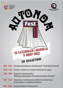 Në kuadër të festimeve për 10 Dhjetorin që përket me “108 Vjetorin e Shpalljes së Krahinës Autonome të Korçës” vjen AUTONOM FEST, një valëzim pafund ngjyrash e motivesh ku arti e historia miksohen së bashku, ku tradita e vlerat zgjojnë mesazhe krenarie kombëtare!