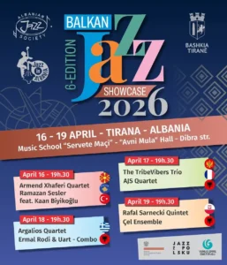 Datat po afrohen! Balkan Jazz Showcase 2026 rikthehet në Tiranë me një program të pasur dhe artistë nga Shqipëria dhe skena ndërkombëtare e jazz-it.