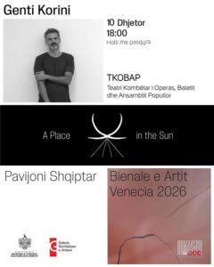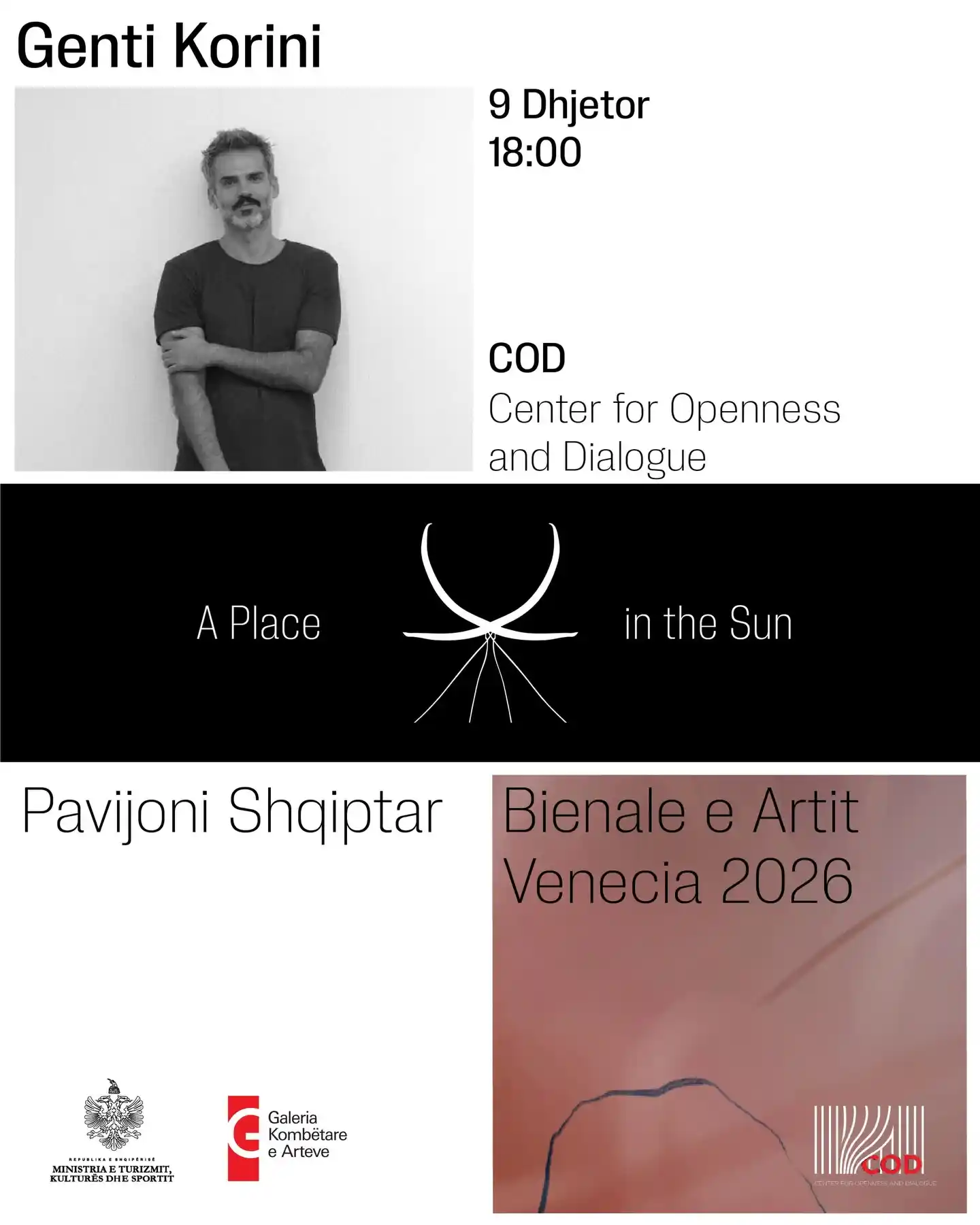 Në prag të pjesëmarrjes së Shqipërisë në Bienalen e 61-të të Venezias, kjo bisedë synon të ndajë me publikun procesin e përzgjedhjes së projektit përfaqësues, konceptin artistik të A Place in the Sun të Genti Korinit dhe qasjen kuratoriale që qëndron pas tij. Diskutimi do të ndalet gjithashtu mbi rëndësinë e këtij momenti për artin bashkëkohor shqiptar, për rolin e institucioneve publike në përfaqësimet ndërkombëtare dhe për mënyrat se si bashkëpunimi ndërmjet aktorëve institucionalë dhe atyre të pavarur forcon praninë dinjitoze ndërkombëtare të Shqipërisë në skenën e artit.