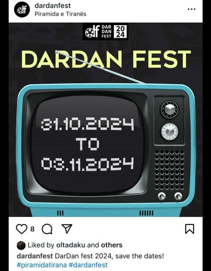 DarDan fest 2024 DarDan fest 2024, save the dates! #piramidatirana #dardanfest + Add to Google Calendar + iCal / Outlook export Date 31/10/2024 - 03/11/2024 Aktivitete të Përfunduara Çmimi Hyrje e lirë Location Piramida, Tirane Share this event