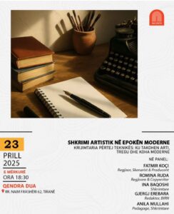 Të mërkurën, më 23 prill, në ora 18:30, te Qendra Dua, në një një diskutim të hapur mbi shkrimin artistik përtej akademisë.