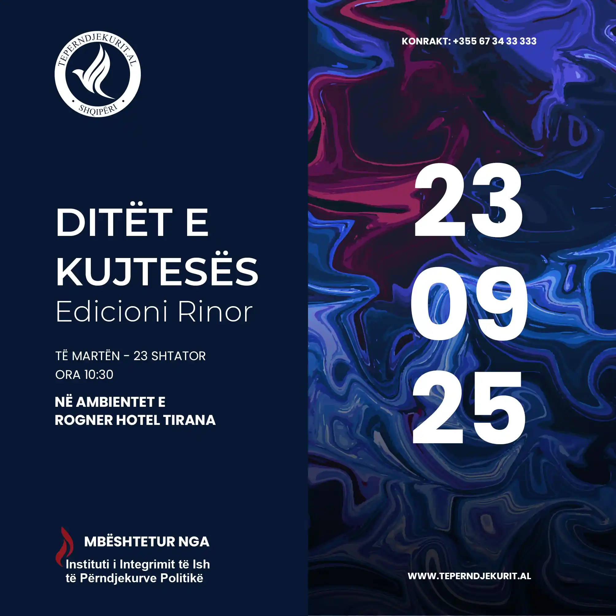 Ju ftojmë të merrni pjesë në këtë event të organizuar nga “TEPERNDJEKURIT.AL” me mbështetjen e Intitutit të Integrimit të ish të Perndjekurve Politik. Ditën e Martë, datë 23.09.2025, ora: 10:30, në ambientet e ROGNER HOTEL TIRANA.