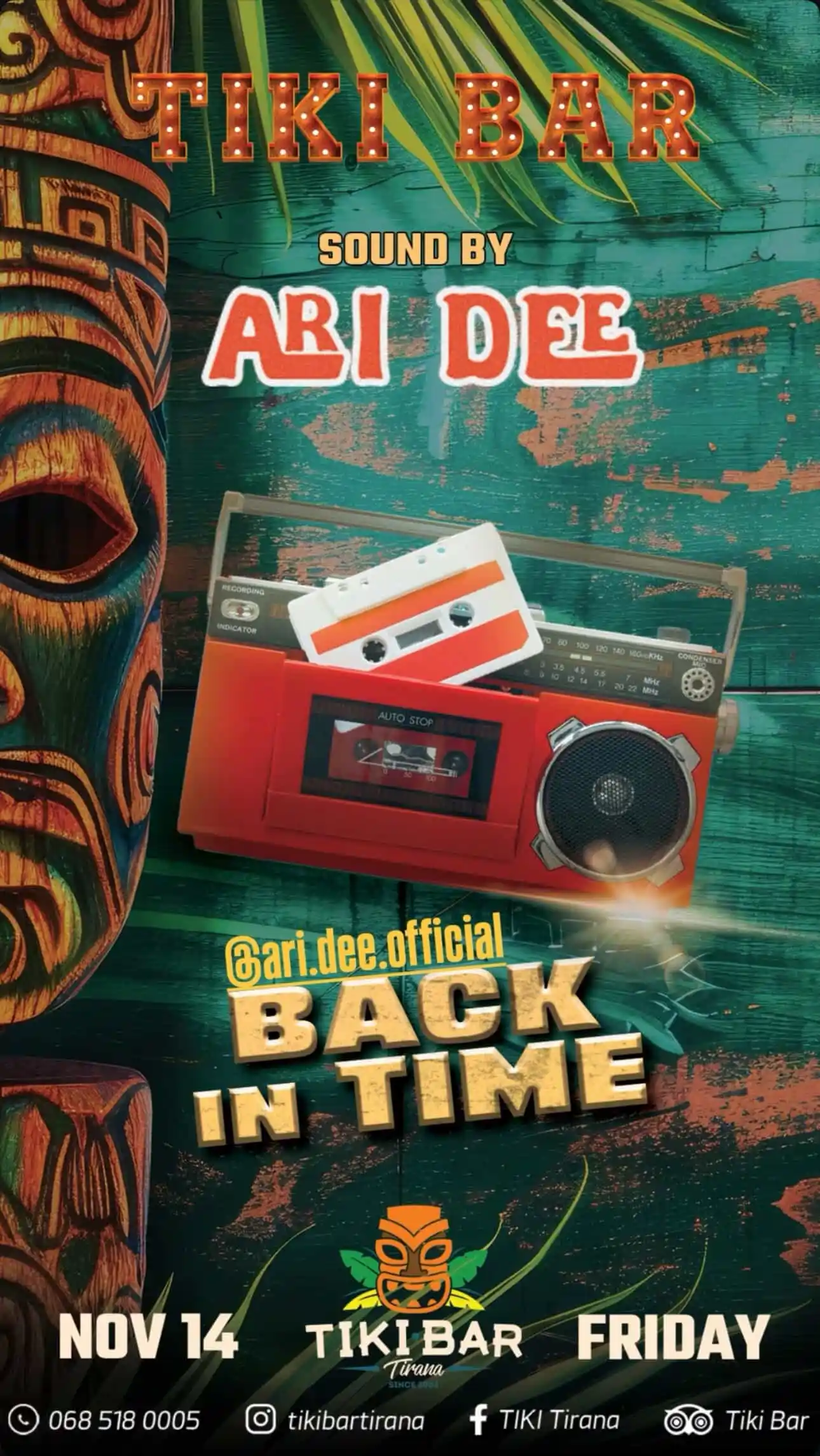 DJ Ari Dee te “Tiki Bar” Tiranë + Add to Google Calendar + iCal / Outlook export Date 14/11/2025 Aktivitete të Përfunduara Time 21:00 Location Tiki Bar Tirana Kategorite Night Life Organizer "Tiki Bar" Tiranë Share this event