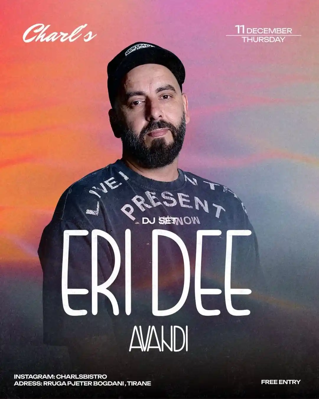 DJ Eri Dee te “Charls Bistro” Tiranë Thursday 🔥🫶🏼 + Add to Google Calendar + iCal / Outlook export Date 11/12/2025 Aktivitete të Përfunduara Time 21:00 Location Charls Bistro Kategorite Night Life Organizer "Charls Bistro" Tiranë Share this event