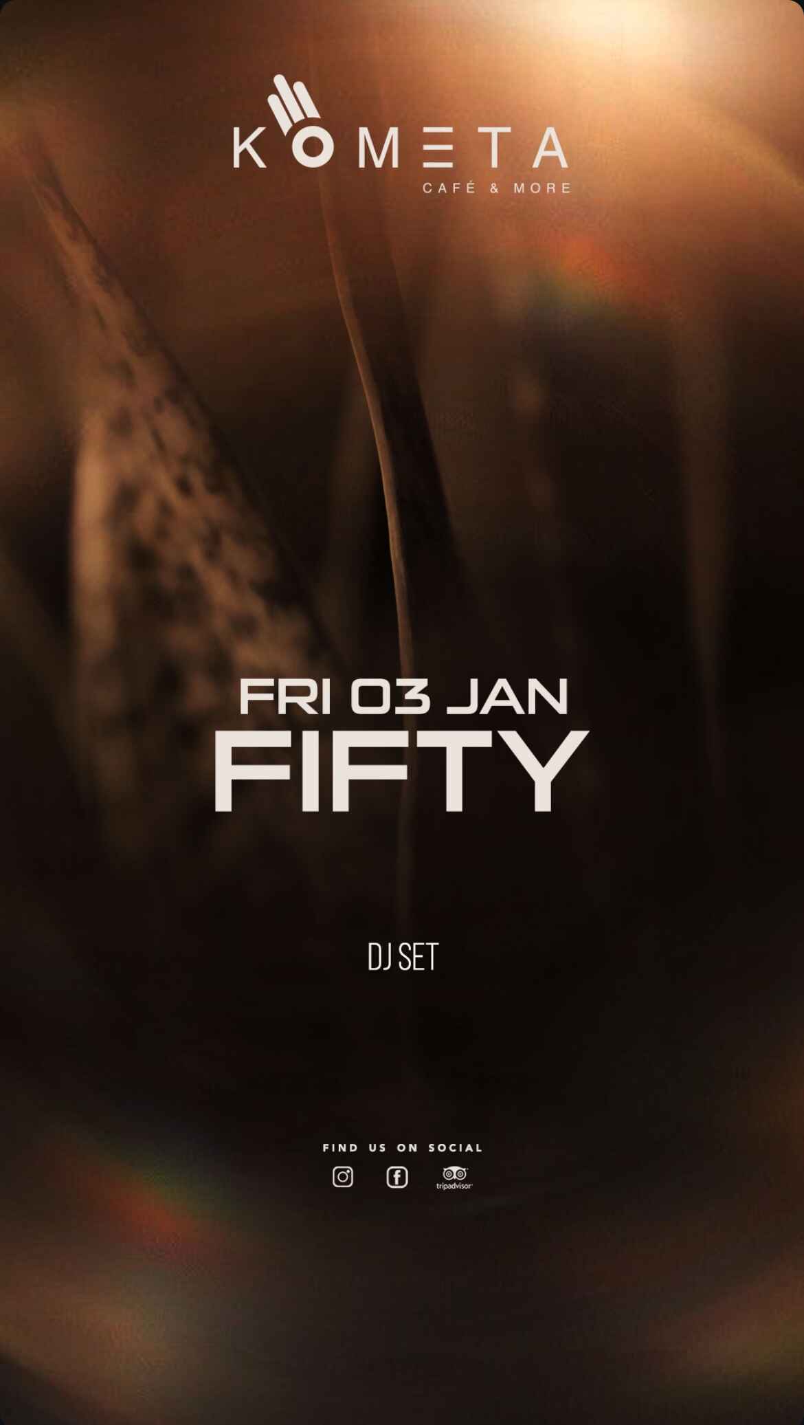 DJ Fifty te “Kometa Bar & More” Tiranë + Add to Google Calendar + iCal / Outlook export Date 03/01/2025 Aktivitete të Përfunduara Time 21:00 Location "Kometa Bar & More" Tiranë Kategorite Night Life Organizer "Kometa Bar & More" Tiranë Share this event