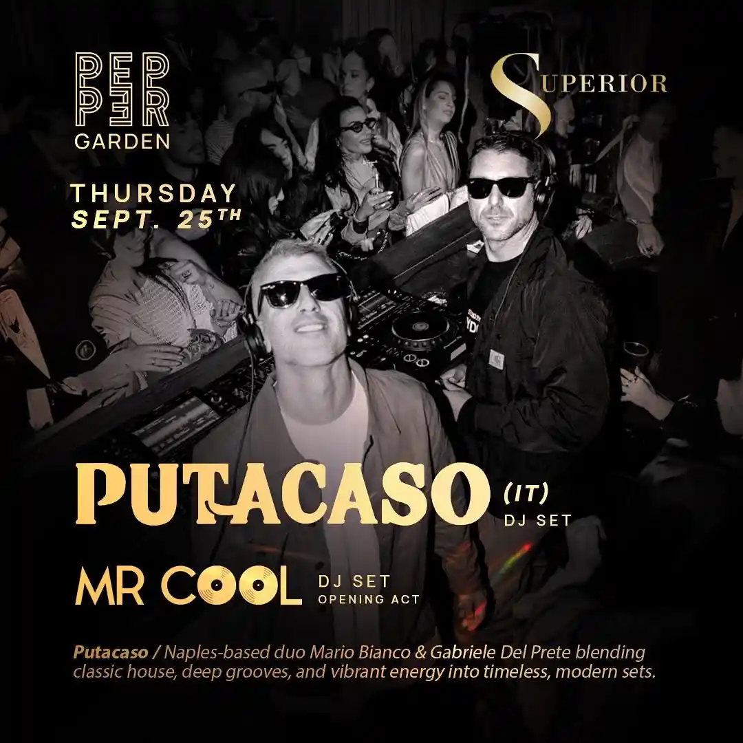 Pepper Garden welcomes Putacaso, the duo of Mario Bianco & Gabriele Del Prete. Known for turning nights into stories across Italy, they bring their unmistakable energy and charisma to Tirana. Expect rhythm, character, and a Thursday that feels like a weekend.