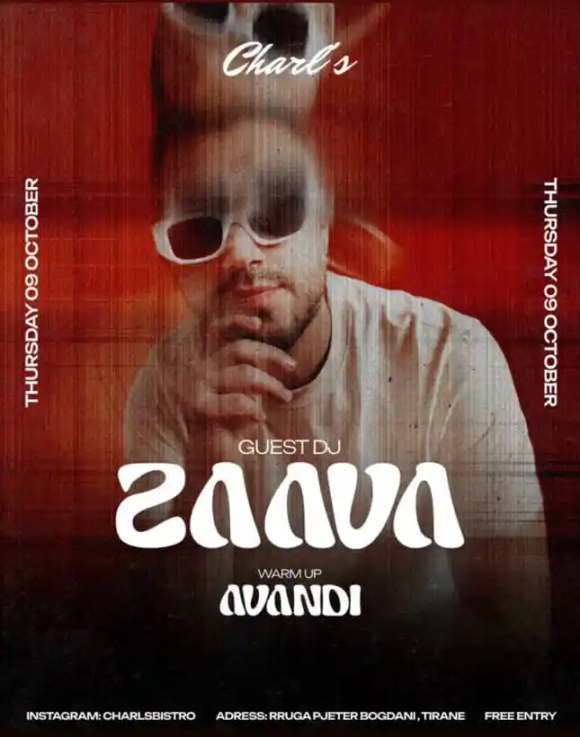 DJ Zaava te “Charls Bistro” Tiranë + Add to Google Calendar + iCal / Outlook export Date 09/10/2025 Aktivitete të Përfunduara Time 21:00 Location Charls Bistro Kategorite Night Life Organizer "Charls Bistro" Tiranë Share this event