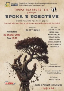 Në datën 30 dhjetor, në orën 18:00, do risjellim për publikun lezhjan dramën “Epoka e robotëve”. Mirardhshi!