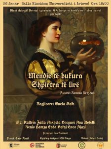 Nxënësit e talentuar të gjimnazit * Çajupi * dhe * Q.Stafa” do të vënë më skenë dramën “Mendje të bukura , shpirtra të lirë” me skenar të Rovena Rrozhani, regji të Suela Bako, ndriçim dhe projektim Edi Dingu, data 26 janar , ora 18.00 , në sallën Black box , Universiteti i Arteve.