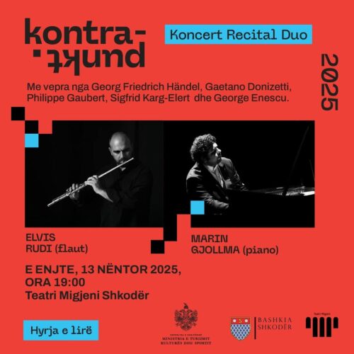 Në vijim të edicionit të dytë “Kontrapunkt”, dy muzikantët e njohur shqiptar, flautisti Elvis Rudi dhe pianisti Marin Gjollma do të rikthehen të enjten e 13 nëntorit, ora 19.00 në teatrin “Migjeni” për të sjellë e dhuruar për publikun shkodran një program mjaft të larmishëm me plot ngjyra dhe thyerje tingëllore.