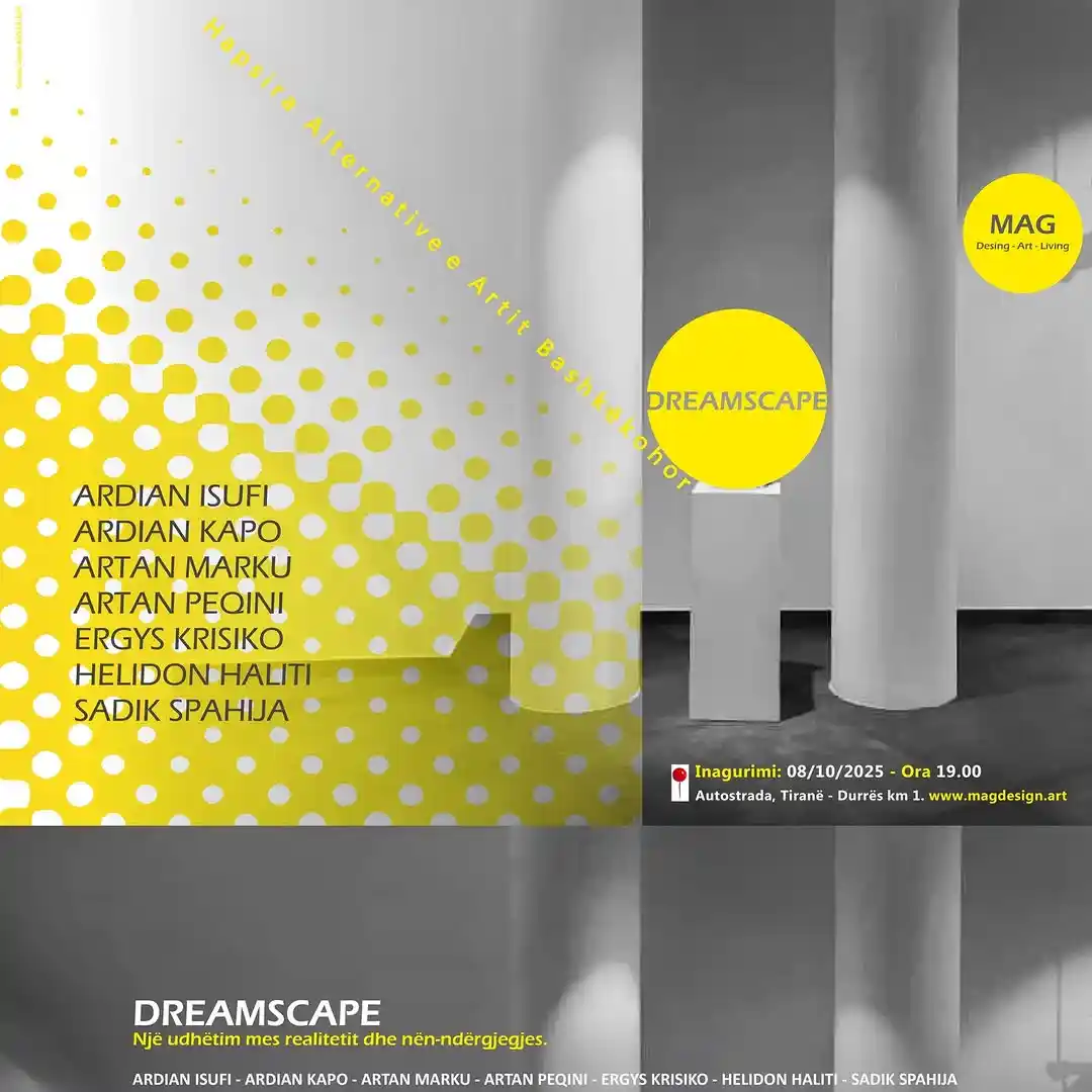 “DREAMSCAPE” është një hapsirë alternative e artit bashkëkohor që fton vizitorin të futet në një peizazh ëndrrash dhe në një botë ku logjika e përditshme shprishet, realiteti shpërbëhet, dhe gjithçka është e mundur. E strukturuar si një udhëtim pamor dhe emocional përmes veprave të artistëve bashkëkohorë nga fusha të ndryshme mediumesh, kjo ekspozitë synon të zhbëjë kufijtë mes reales dhe imagjinatës, vetëdijes dhe nënvetëdijes, kujtesës dhe dëshirës.