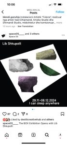 E titulluar “Unë mund të fle kudo”, ekspozita hapet më 29.11 dhe do të qëndrojë e hapur deri më 08.12.2024, pjesë e ekspozitave BOX në Space 05.