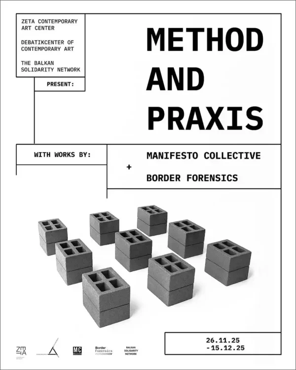 METHOD AND PRAXIS is an exhibition that brings together the work of Manifesto Collective and Border Forensics, seeking to shed light on a multilayered process of investigative and creative research. The exhibition is divided into two zones, the first of which is dedicated to specific persons. Border Forensics’ investigation into the police murder of a Black Swiss and South African man, Roger Nzoy Wilhelm, is shown alongside Albanian cases such as the coverup of the death of Ardit Gjoklaj, a minor who was illegally employed in a landfill overseen by the Municipality of Tirana, and the torture of Khalid El-Masri, a German citizen kidnapped by the CIA and subsequently abandoned in Albania. This ongoing fusion of illegality with power and politics has led to the creation of several extraterritorial zones within the country, zones that are further explored in the second zone of the exhibition, dedicated to the Camp. Here, local examples – from the Uyghurs released from Guantanamo Bay and stranded in Albania as stateless persons; to the Mojahedin-e-Khalq (MEK) relocated from Iraq to a tightly controlled compound in Manzë under a US-brokered deal; or the Afghans evacuated after the US withdrawal from Afghanistan, many of whom are still awaiting resettlement; and, last but not least, the Italian extraterritorial migrant detention center in Gjadër – are provocatively juxtaposed with the Border Forensics investigation into the Nador-Melilla border trap massacre, in order to highlight structural similarities but also the necessity for investigative practices to take hold within the Albanian art scene as well. This exhibition represents a first effort to do so.