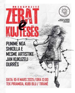 Të hënën hapet ekspozita me punime të nxënësve të Shkollës së Mesme “Jan Kukuzeli”, Durrës, në bashkëpunim me ISKK. Punimet – vizatime, piktura, instalacione – janë frymëzuar nga dëshmitë e personave të persekutuar gjatë regjimit komunist, të cilat i ka botuar ISKK në kolanën “Zërat e Kujtesës”.