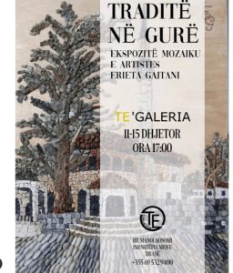Ditën e dielë, datë 11 Dhjetor ora 17:00 çelet ekspozita e artistes Erieta Gajtani titulluar “Traditë në Gur”. Rreth 20 punime në mozaik të frymëzuara nga tradita e folklori, indentiteti në zbehje i qytetit të saj, Tiranës dhe natyra.