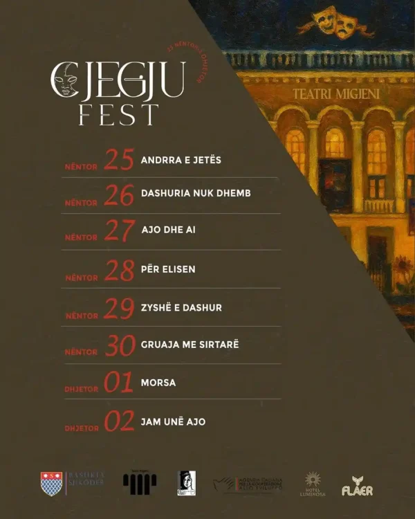 Teatri “Migjeni” dhe Bashkia Shkodër në bashkëpunim me shoqatën “Gruaja tek Gruaja”, ju sjell edicionin e parë të festivalit “Gjegju Fest”!