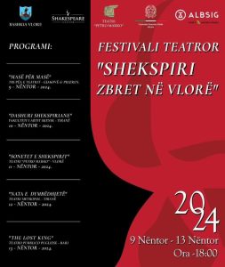 Bashkia Vlorë , “SHAKESPEARE Center” dhe Teatri “Petro Marko” nën kujdesin e kryetarit të bashkisë, Z. Ermal DREDHA, organizojnë Festivalin Ndërkombëtar të Shekspirit “SHEKSPIRI ZBRET NË VLORË”.