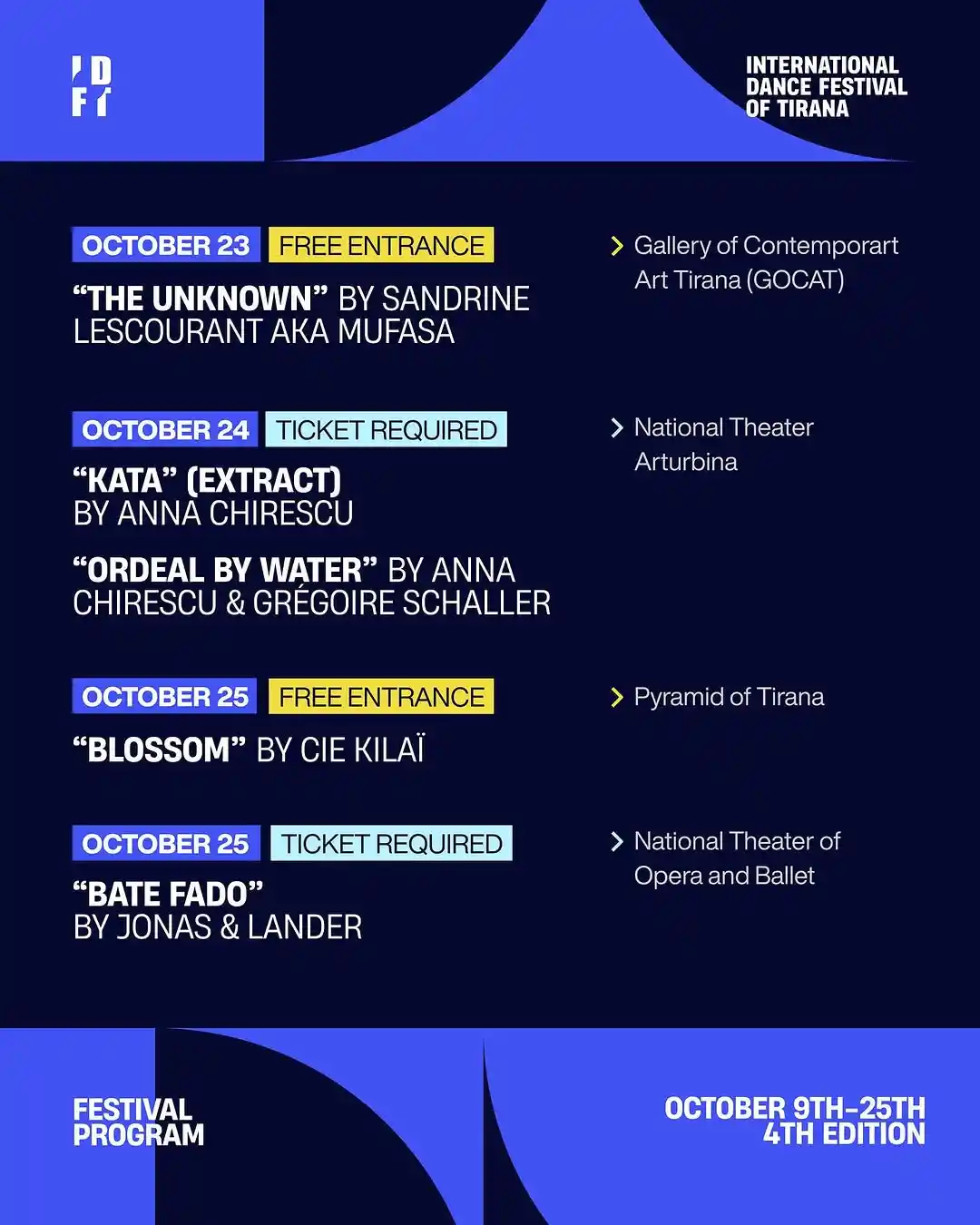 Gjatë tre javëve, Tirana do të mirëpresë një program të gjerë që bashkon figura të mirënjohura të dancit bashkëkohor dhe një brez të ri koreografësh, duke vendosur gjuhë të ndryshme artistike krah njëra-tjetrës.