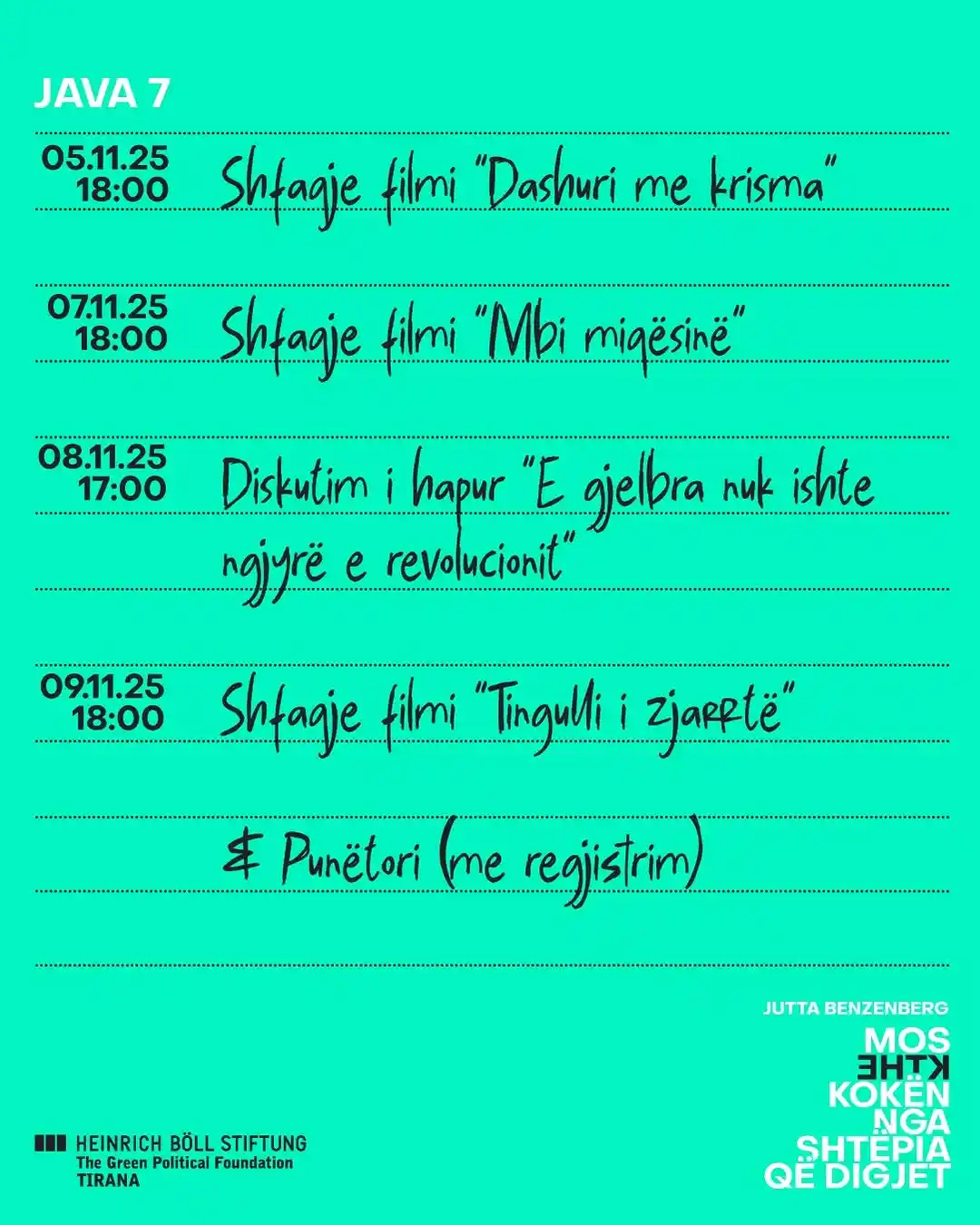 Programi i edukimit politik krahas ekspozitës “Jutta Benzenberg: Mos kthe kokën nga shtëpia që digjet” për javën.