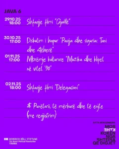 Kujdes: Programi është gjithmonë në përditësim në varësi të motit. Ndiqni kanalet tona për njoftimet mbi aktivitetet individuale, duke përfshirë detaje mbi të ftuarit, gjuhën dhe detajet e regjistrimit.