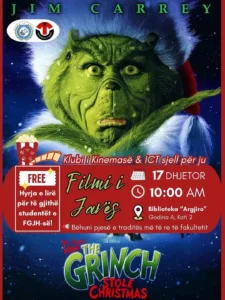 Klubi i Kinemasë & ICT-së ju fton të nisim së bashku një traditë të re në FGJH me shfaqjen e filmit “How The Grinch Stole Christmas” – filmi ideal për të hyrë në atmosferën magjike të fundvitit! 💚✨