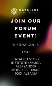 📍 Catalyst Story Institute — Rruga Aleksandër Moisiu 36, Tirana