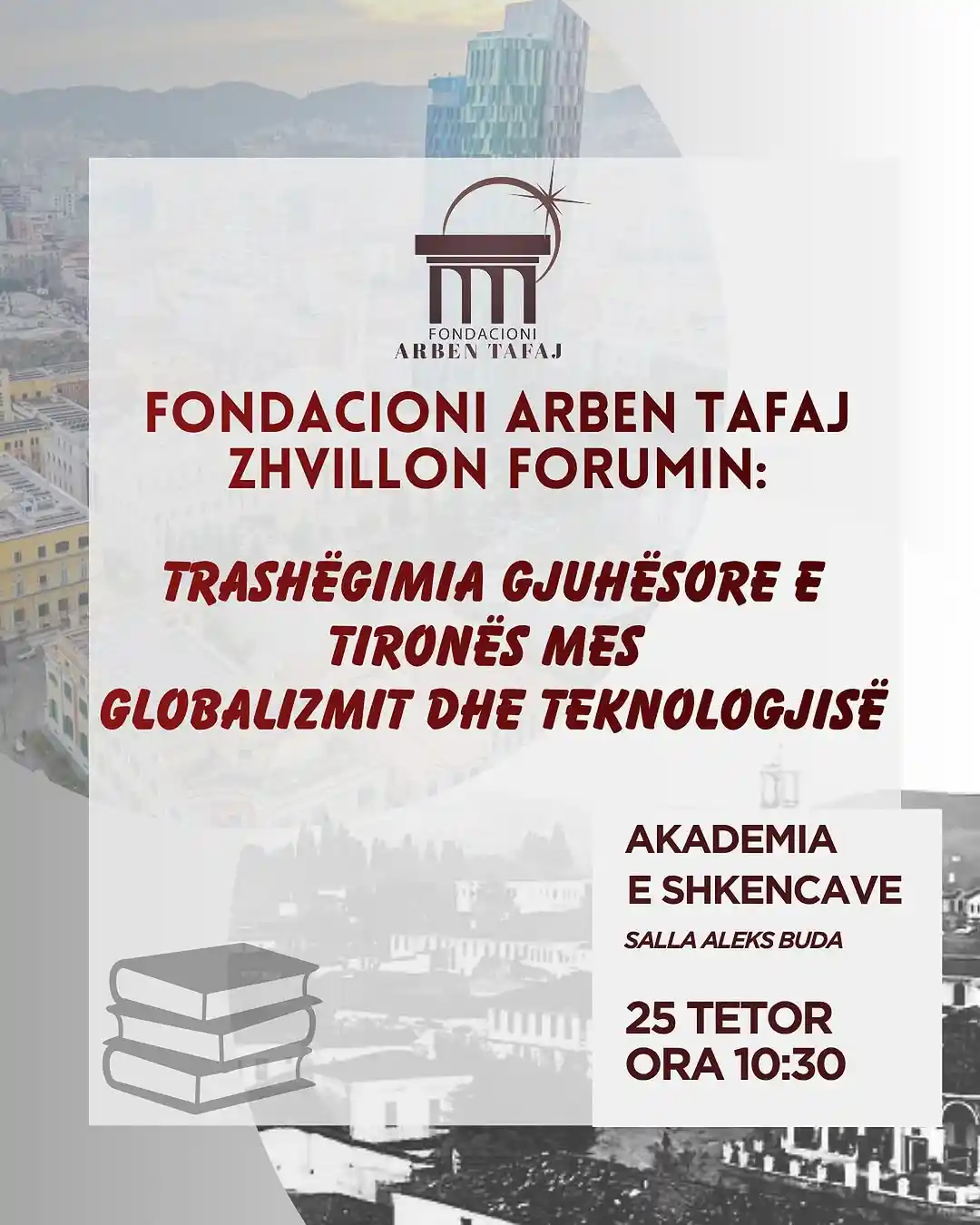 Fondacioni “Arben Tafaj”, në kuadër të ruajtjes së vlerave, rritjes së kulturës dhe zhvillimit të traditës së qytetit të Tiranës, zhvillon forumin: