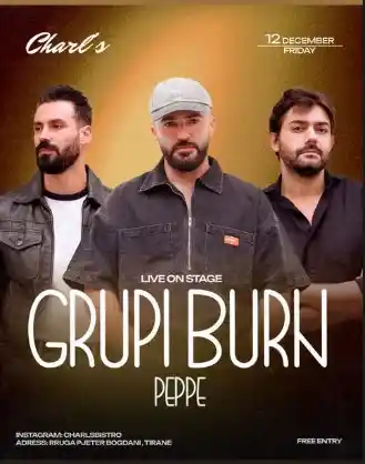 Grupi “Burn” te “Charls Bistro” Tiranë + Add to Google Calendar + iCal / Outlook export Date 12/12/2025 Aktivitete të Përfunduara Time 21:00 Location Charls Bistro Kategorite Muzikë Night Life Organizer "Charls Bistro" Tiranë Share this event
