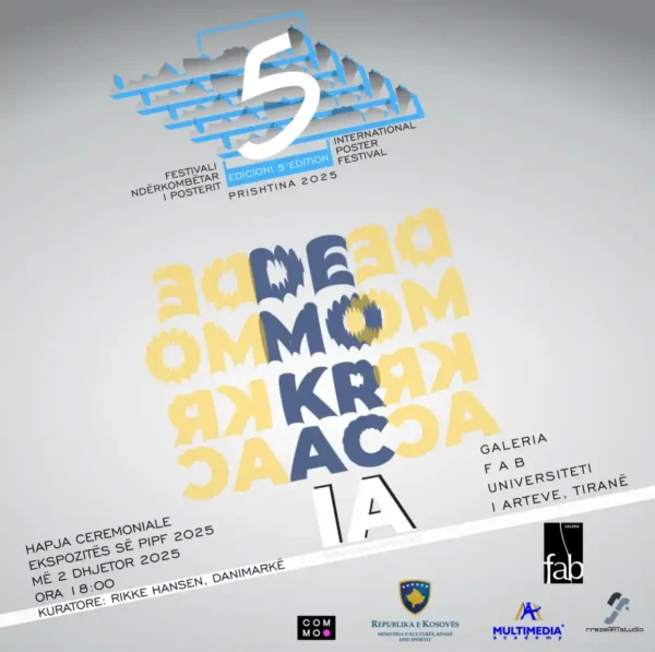 Galeria ka kënaqësinë të hapë ekspozitën zyrtare të Festivalit Ndërkombëtar të Posterit “Prishtina 2025”, që këtë vit zhvillohet nën temën Demokracia. Edicioni i vitit 2025 e kthen festivalin në një platformë reflektimi vizual mbi mënyrën se si demokracia jetohet, sfidohet dhe riformësohet sot — sidomos në Ballkanin Perëndimor, ku tranzicioni politik, kujtesa kolektive dhe aspiratat europiane vazhdojnë të ndikojnë realitetin shoqëror.