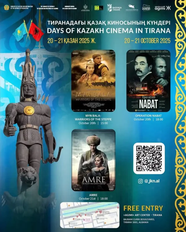 Ditët e Kinemasë Kazake në Tiranë sjellin për publikun shqiptar tri filma nga Kazakhfilm, që pasqyrojnë historinë, emocionin dhe shpirtin e Kazakistanit përmes kinemasë