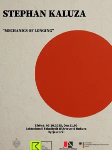 Jeni të ftuar në kuadër të Javës Kulturore Gjermane në një Ligjëratë ekskluzive nga Stephan Kaluza të titulluar: “Mekanizma të dëshirës krijuese”, datë 06.10.2025, ora 11:00, në Lektoriumin e Fakultetit të Arteve të Bukura të Universitetit të Arteve, Tiranë
