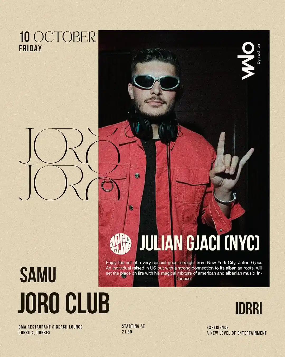 Joro Club – DJ Julian Gjaci THE LAST DANCE! @oma.dyrrachium + Add to Google Calendar + iCal / Outlook export Date 10/10/2025 Time 21:30 Location "Oma Dyrrachium" Durrës Kategorite Night Life Share this event