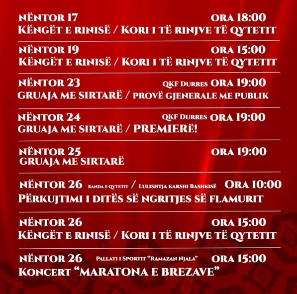 🔸️KALENDARI ARTISTIK PËR MUAJIN NËNTOR 2025