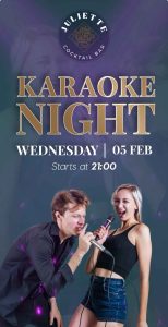 Karaoke te “Juliette Cocktail Bar” Tiranë + Add to Google Calendar + iCal / Outlook export Date 05/02/2025 Aktivitete të Përfunduara Time 21:00 Location Juliette Cocktail Bar Kategorite Muzikë Night Life Organizer “Juliette Cocktail Bar”, Tiranë Share this event