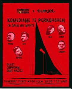 20 Mars – ora 20:00! Rezervo biletën në DM. Komedi si përherë, open mic, i ftuar special, nami do bëhet. Vendet first come first serve, dyert hapen në 19:00.