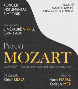 Me interpretimin e Orkestrës Simfonike të TKOBAP-së, nën drejtimin e dirigjentit Gridi Kraja, dhe me interpretimin e dy pianisteve të talentuara nga Universiteti i Arteve, Hera Marku dhe Odesa Meti, ky projekt sjell në skenë koncertet për piano dhe orkestër të W.A. Mozart.