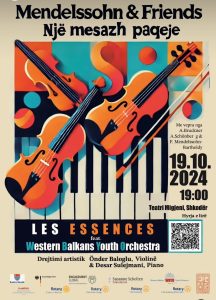 🎼Kjo seri e veçantë koncertesh është rezultat i një bashkëpunimi midis anëtarëve të Orkestrës Rinore të Balkanit Perëndimor dhe orkestrës së dhomës Essen “Les assences”. Së bashku, këta muzikantë të talentuar nga dhjetë vende evropiane kané zhvilluar një program që fokusohet në veprat e Mendelssohn, Bruckner dhe Schönberg🎼