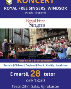 Grupi muzikor nga Anglia “Royal free singers” me mbështetjen e Bashkisë Gjirokastër organizojnë një koncert të veçantë në qytetin e gurtë. 74 pjesëtarët e grupit interpretojnë për artdashësit një program të pasur artistik.