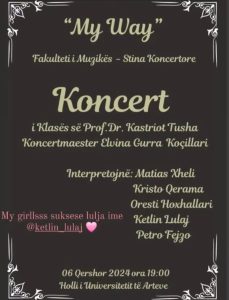 Të enjten 6 Qershor në orën 19:00- Koncerti i klasës së Prof. Asoc. Kastriot Tusha, koncertmaester Elvina Gurra Koçillari.