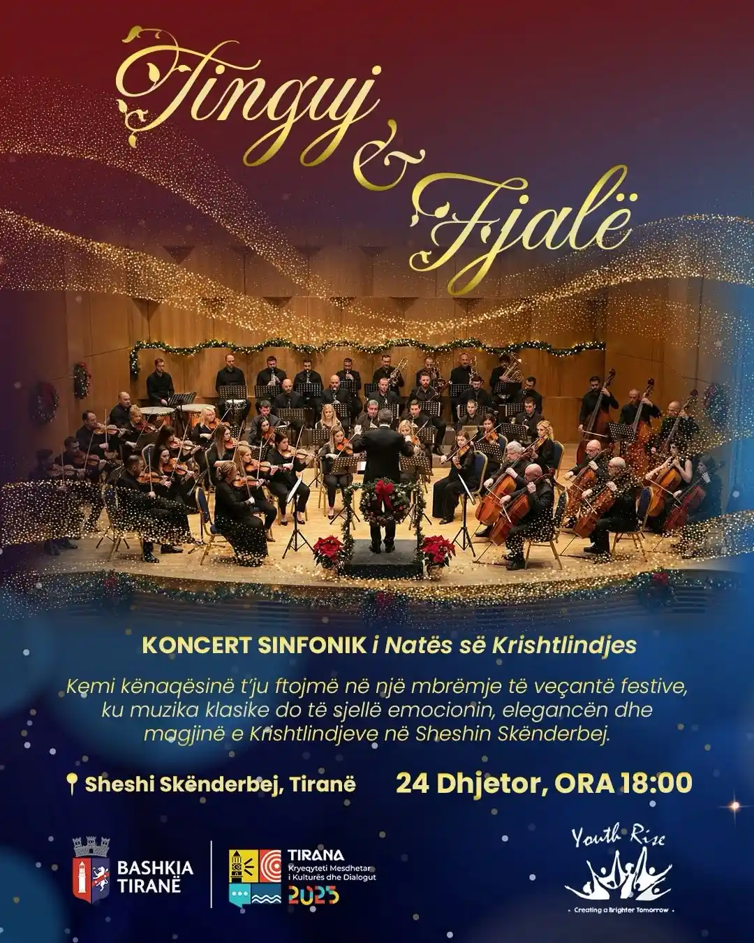 Këtij koncerti do t’i shtohen edhe zëra të spikatur dhe magjikë të skenës muzikore shqiptare, të cilët do ta pasurojnë më tej këtë mbrëmje të veçantë: sopranoja @eva.golemi , baritoni @armandolikaj , si edhe këngëtarët @kejsijazxhii dhe @martinpanoo . I gjithë ky projekt artistik do të realizohet nën drejtimin e dirigjentit @armandbroshka , duke synuar të krijojë një përvojë muzikore të plotë dhe emocionuese, në frymën e vërtetë të festës së Krishtlindjes.
