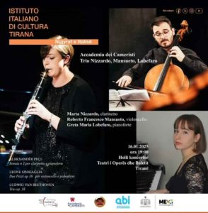 Një trio origjinale (klarinetë, violonçel dhe piano) e formuar nga tre talentë të rinj me vlera të padiskutueshme interpretative do të luajë muzikë nga Peçi, Sinigaglia dhe Beethoven.
