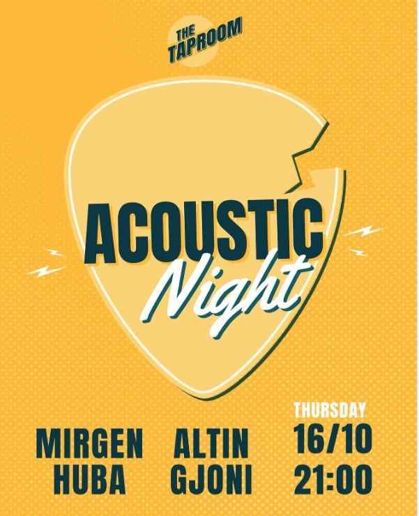 Live acoustic night me Mirgen Huba & Altin Gjoni te Taproom + Add to Google Calendar + iCal / Outlook export Date 16/10/2025 Time 21:00 Çmimi Hyrje e lirë Location "The Taproom" Tiranë Kategorite Muzikë Night Life Performancë Share this event