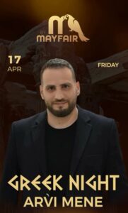 Greek night🇬🇷 🗓️17 Prill 🕥21:00 🎤Arvi Mene #mayfair #greeknight #tirana #bllok
