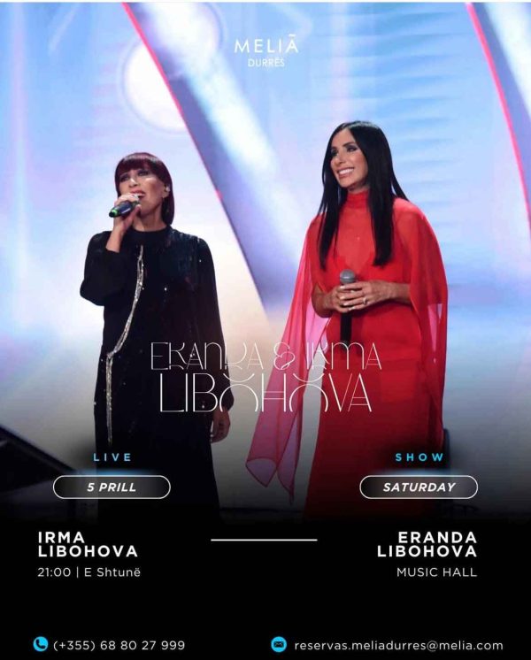 Një tjetër mbrëmje magjike po vjen në Melia Durrës! 🎤✨ Më 5 Prill, motrat legjendare Eranda & Irma Libohova do të ngjiten në skenën e Melia Durrës për një performancë që s’duhet humbur!
