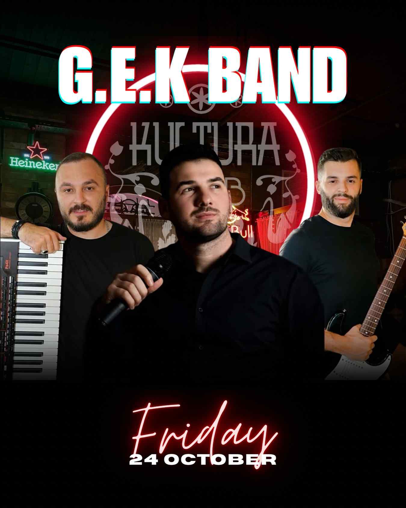 Atmosferë, muzikë e mirë dhe energji që nuk mungon — këtë të premte, më 24 tetor, ju ftojmë të kaloni një mbrëmje ndryshe me G.E.K Band!