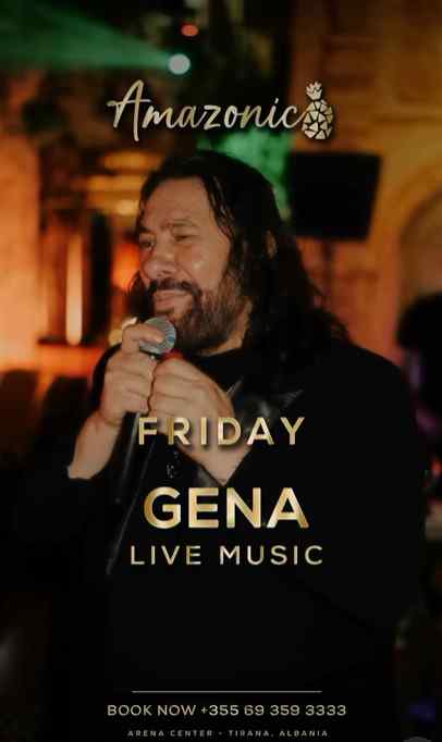 Live music nga GENA te Amazonic Tirana + Add to Google Calendar + iCal / Outlook export Date 10/10/2025 Time 21:00 Çmimi Me rezervim Location "Amazon" Tiranë Kategorite Muzikë Night Life Performancë Share this event